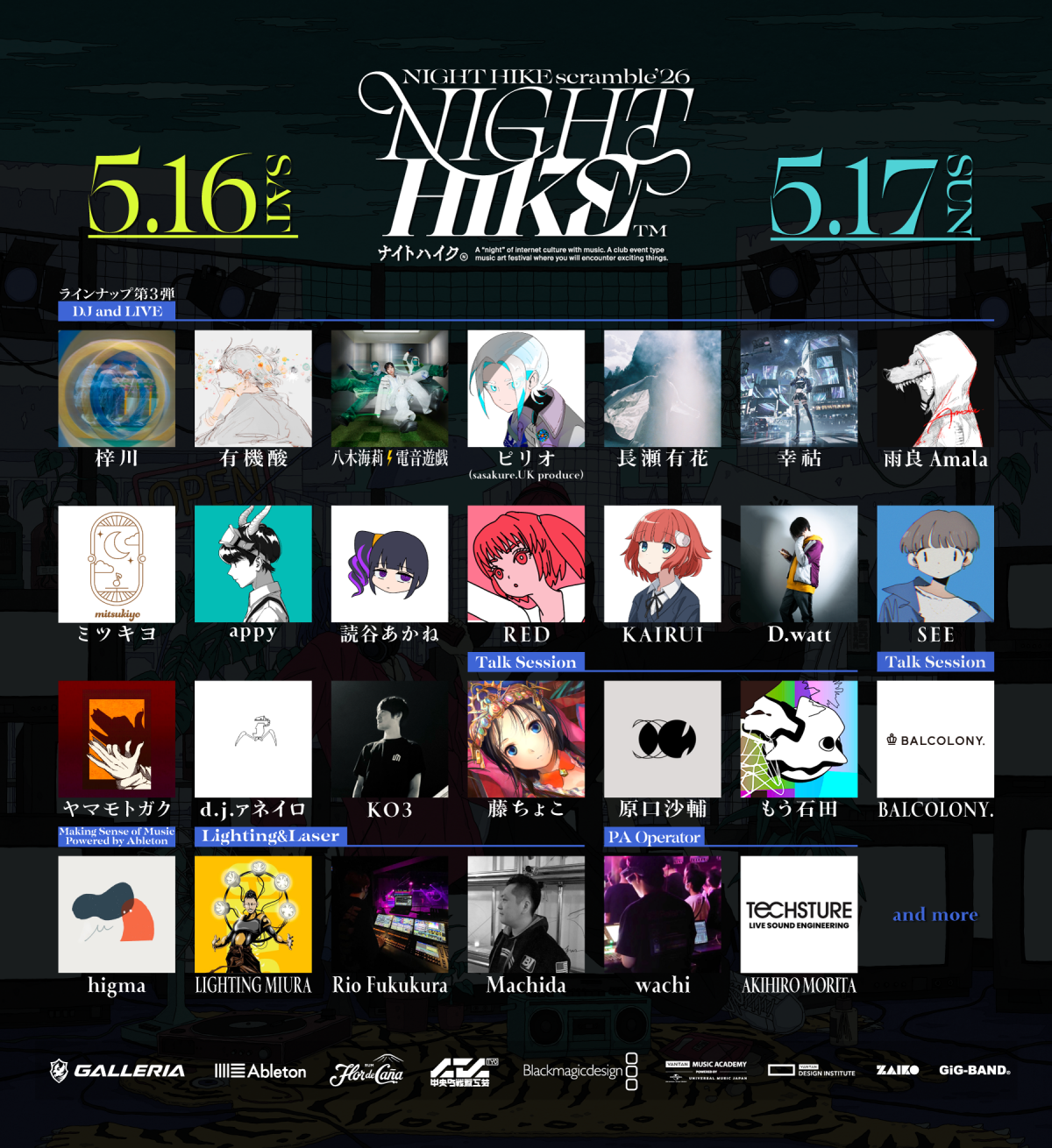 有機酸 / 原口沙輔 / 星宮とと / DÉ DÉ MOUSE / ピリオ(sasakure.UK produce) / 幸祜 / 和田たけあき / Generation Z / LanPage / 西郷・DJ・いろり / 威戸れもね。 / appy / DJはるぽん with Suupeas / muyu / 芥田レンリ / ざんぎ / SEE / KAIRUI /
